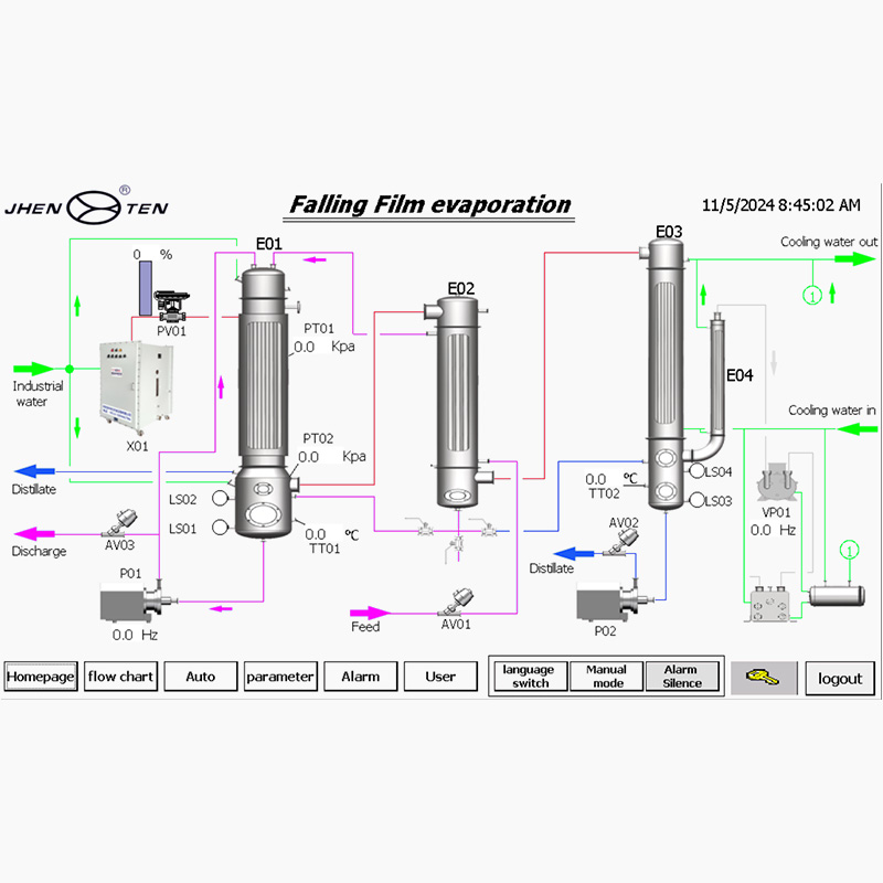 PLC/HMI人機界面:預(yù)設(shè)多模式蒸發(fā)曲線(連續(xù)/間歇)